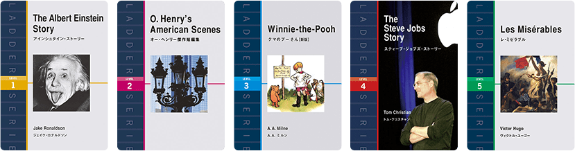 ラダーシリーズの特徴。それは読みやすさの目安となるレベル別になっていること、クラシック、ミステリー、映画や名作(海外・日本)、ビジネス、バイオと色々なカテゴリーから好きなタイトルを選べること。IBC SQUAREなら章ごとの試し読みも可能です!